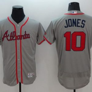 Braves #10 Chipper Jones Grey Fashion Stars & Stripes Flexbase Authentic Stitched MLB Jersey
