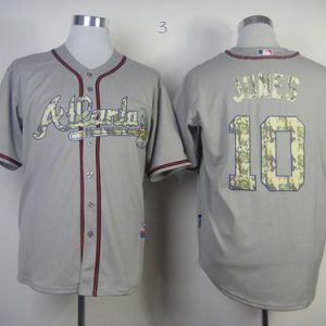 Braves #10 Chipper Jones Grey USMC Cool Base Stitched MLB Jersey