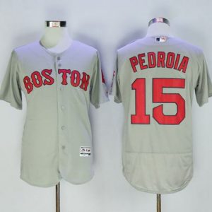 Red Sox #15 Dustin Pedroia Grey Flexbase Authentic Collection Name On Back Stitched MLB Jersey