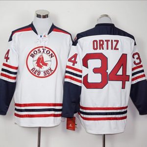 Red Sox #34 David Ortiz White Long Sleeve Stitched MLB Jersey