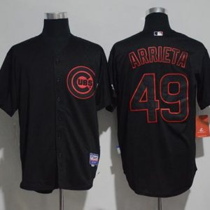 Cubs #49 Jake Arrieta Black Strip Stitched MLB Jersey