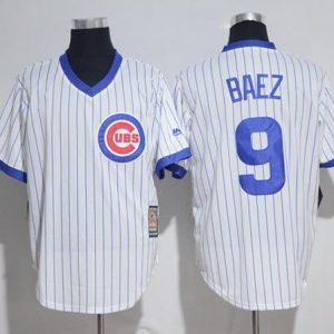 Cubs #9 Javier Baez White Strip Home Cooperstown Stitched MLB Jersey