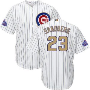 Cubs #23 Ryne Sandberg White(Blue Strip) 2017 Gold Program Cool Base Stitched MLB Jersey