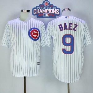 Cubs #9 Javier Baez White(Blue Strip) New Cool Base 2016 World Series Champions Stitched MLB Jersey