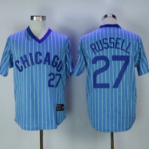 Cubs #27 Addison Russell Blue(White Strip) Cooperstown Throwback Stitched MLB Jersey