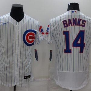 Men Chicago Cubs #14 Ernie Banks White Flex Base Stitched Jersey