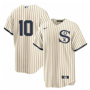 Men Chicago White Sox #10 Yoan Moncada 2021 Cream/Navy Field of Dreams Cool Base Stitched Jersey