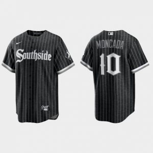 Men Chicago White Sox #10 Yoan Moncada Black 2021 City Connect Cool Base Stitched Jersey