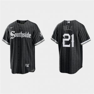 Men Chicago White Sox #21 George Bell Black 2021 City Connect Cool Base Stitched Jersey