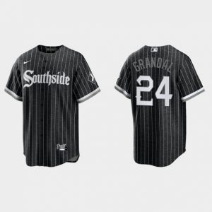 Men Chicago White Sox #24 Yasmani Grandal Black 2021 City Connect Cool Base Stitched Jersey