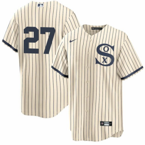 Men Chicago White Sox #27 Lucas Giolito 2021 Cream/Navy Field of Dreams Cool Base Stitched Jersey