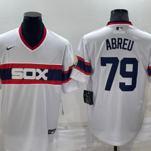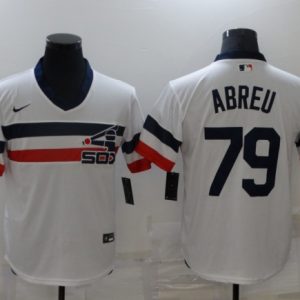 Men Chicago White Sox #79 Jose Abreu White Throwback Cool Base Stitched Jersey
