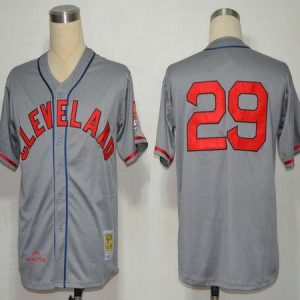 Mitchell And Ness 1948 Indians #29 Satchel Paige Grey Stitched MLB Jersey