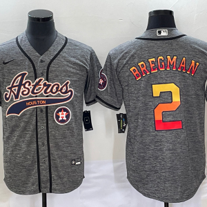 Men Houston Astros #2 Alex Bregman Gray With Patch Cool Base Stitched Baseball Jersey