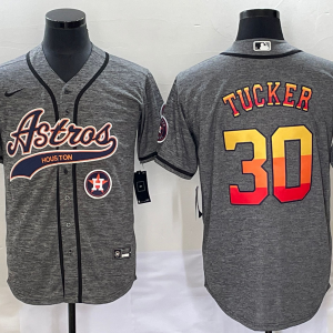 Men Houston Astros #30 Kyle Tucker Gray With Patch Cool Base Stitched Baseball Jersey