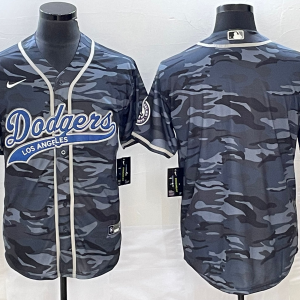 Men Los Angeles Dodgers Blank Gray Camo Cool Base With Patch Stitched Baseball Jersey