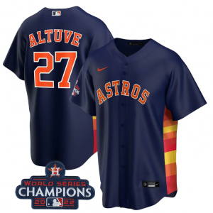 Men Houston Astros #27 Jose Altuve Navy 2022 World Series Champions Home Stitched Baseball Jersey
