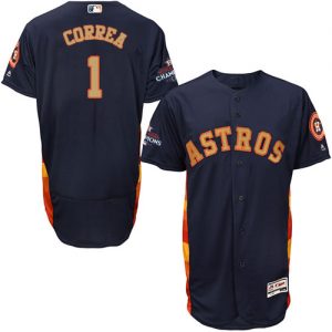 Astros #1 Carlos Correa Navy Blue FlexBase Authentic 2018 Gold Program Cool Base Stitched MLB Jersey