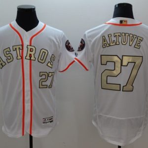 Astros #27 Jose Altuve White FlexBase Authentic 2017 World Series Champions Gold Program Stitched MLB Jersey