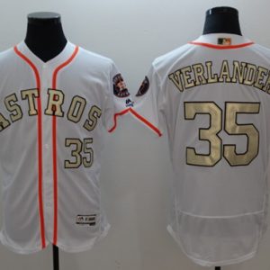 Astros #35 Justin Verlander White FlexBase Authentic 2017 World Series Champions Gold Program Stitched MLB Jersey