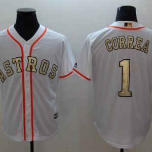 Astros #1 Carlos Correa White 2017 World Series Champions Gold Program Cool Base Stitched MLB Jersey