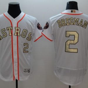 Astros #2 Alex Bregman White FlexBase Authentic 2017 World Series Champions Gold Program Stitched MLB Jersey