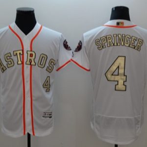Astros #4 George Springer White FlexBase Authentic 2017 World Series Champions Gold Program Stitched MLB Jersey