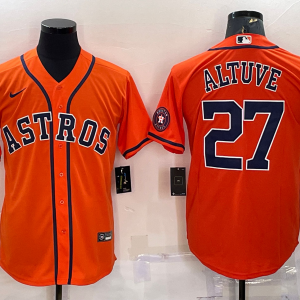 Men Houston Astros #27 Jose Altuve Orange With Patch Cool Base Stitched Jersey