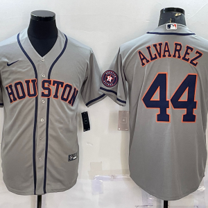 Men Houston Astros #44 Yordan Alvarez Grey With Patch Cool Base Stitched Jersey