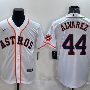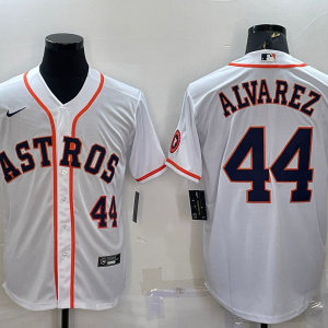 Men Houston Astros #44 Yordan Alvarez White With Patch Cool Base Stitched Jersey