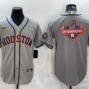 Men Houston Astros Grey 2022 World Series Champions Team Big Logo With Patch Cool Base Stitched Jersey