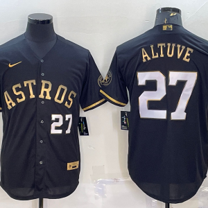 Men Houston Astros #27 Jose Altuve Black Gold 2022 World Series Stitched Baseball Jersey