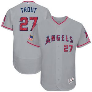 Angels of Anaheim #27 Mike Trout Grey Fashion Stars & Stripes Flexbase Authentic Stitched MLB Jersey