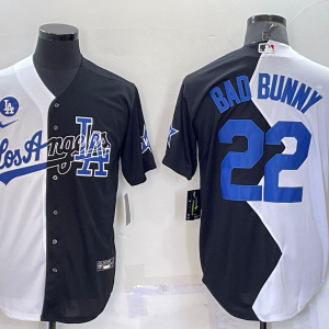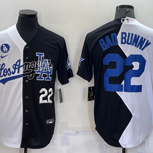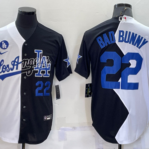 Men Los Angeles Dodgers #22 Bad Bunny 2022 All-Star White/Black Split Cool Base Stitched Baseball Jersey