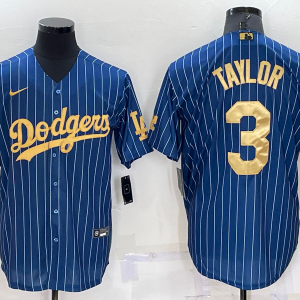 Men Los Angeles Dodgers #3 Chris Taylor Navy Gold Cool Base Stitched Baseball Jersey