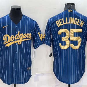 Men Los Angeles Dodgers #35 Cody Bellinger Navy Gold Cool Base Stitched Baseball Jersey
