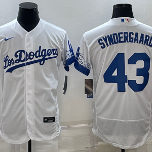 Men Los Angeles Dodgers #43 Noah Syndergaard White Flex Base Stitched Baseball Jersey