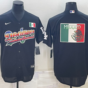 Men Los Angeles Dodgers Black Team Big Logo Cool Base Stitched Baseball Jersey