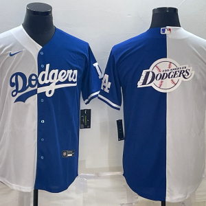 Men Los Angeles Dodgers White Blue Split Team Big Logo Cool Base Stitched Baseball Jersey