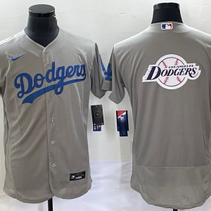 Men Los Angeles Dodgers Grey Team Big Logo Flex Base Stitched Baseball Jersey