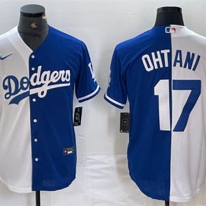 Men Los Angeles Dodgers #17 Shohei Ohtani White/Blue Split Cool Base Stitched Baseball Jersey