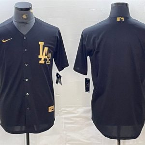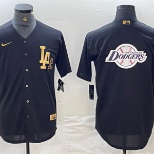 Men Los Angeles Dodgers Team Big Logo Black Cool Base Stitched Baseball Jersey