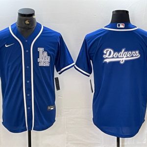 Men Los Angeles Dodgers Team Big Logo Blue Cool Base Stitched Baseball Jersey