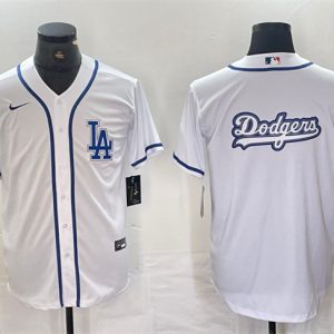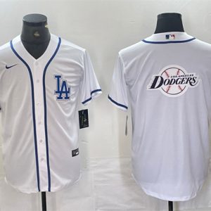 Men Los Angeles Dodgers Team Big Logo White Cool Base Stitched Baseball Jersey