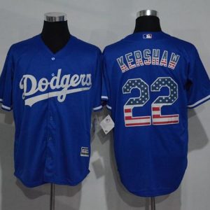 Dodgers #22 Clayton Kershaw Blue USA Flag Fashion Stitched MLB Jersey