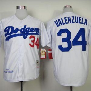 Mitchell And Ness 1955 Dodgers #34 Fernando Valenzuela White Throwback Stitched MLB Jersey