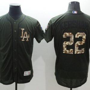 Dodgers #22 Clayton Kershaw Green Flexbase Authentic Collection Salute to Service Stitched MLB Jersey