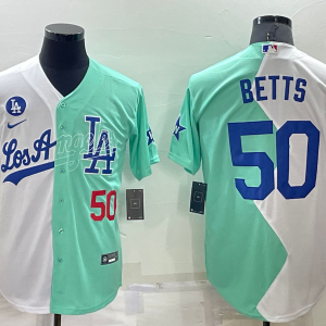 Men Los Angeles Dodgers #50 Mookie Betts 2022 All-Star White/Green Cool Base Stitched Baseball Jersey