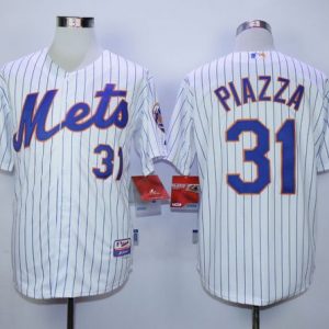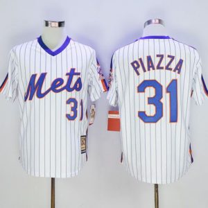 Mitchell And Ness Mets #31 Mike Piazza White(Blue Strip) Throwback Stitched MLB Jersey