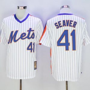 Mets #41 Tom Seaver White(Blue Strip) Cooperstown Stitched MLB Jersey